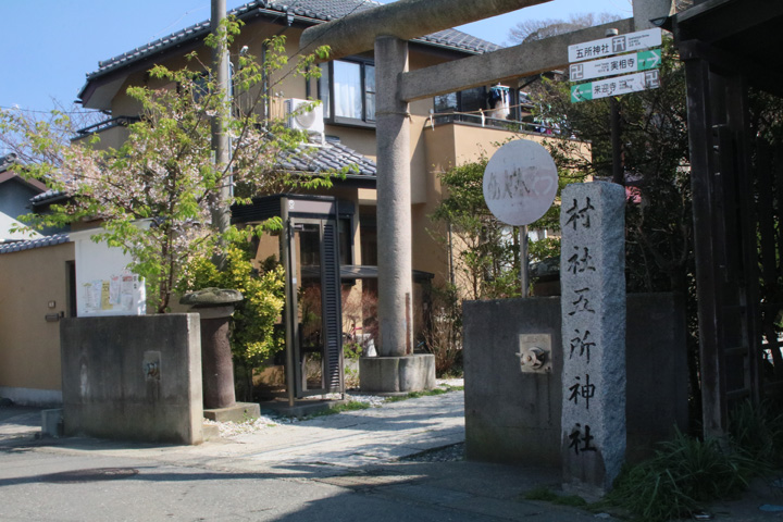 五所神社の鎮座地「材木座」は、古くは材木座村の一村でありましたが、後に乱橋(みだればし)村と材木座(ざいもくざ)村に分かれていました。明治二十二年(1889)この二つの村が再び合併し、大字乱橋材木座となり鎌倉郡西鎌倉村の一部となりました。後の明治四十一年(1908)七月、乱橋村の鎮守であった三島神社の地(現在の五所神社の地)に材木座村の鎮守諏訪神社(現 材木座五丁目)、乱橋村能巌寺部落の八雲神社(現 材木座四丁目)と金毘羅宮(現 材木座四丁目)、材木座村中島部落の視女八坂社(見目明神・現 材木座六丁目)の四社を合祀し五所神社と改称しました。