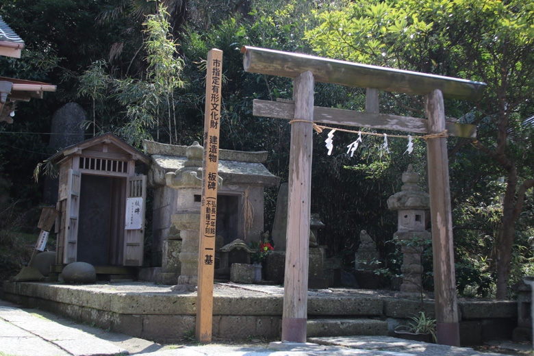 当時材木座の芝原に別荘を構えていた大阪株式取引所(現・大阪取引所)の第二代頭取であった吉田千足(よしだちたる)の書による記念碑。神社参道の敷石など寄付者の氏名が記されています。