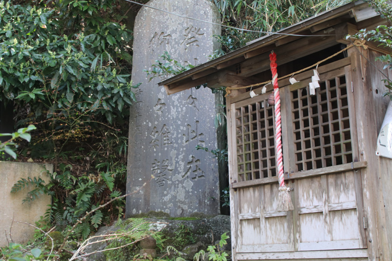 当時材木座の芝原に別荘を構えていた大阪株式取引所(現・大阪取引所)の第二代頭取であった吉田千足(よしだちたる)の書による記念碑。神社参道の敷石など寄付者の氏名が記されています。