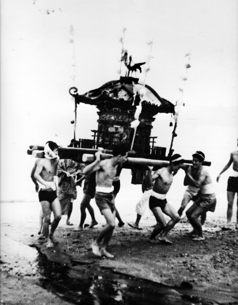 陸に上がれば役員が追いかけてくる。担ぎ手たちは、神輿を担ぎながら海に逃げていく。そんなイタチごっこを繰り返していました。そして十五日の朝には青年団も疲れて、お神輿を宮入させます。これが現在の海上お渡りに変化していきました。