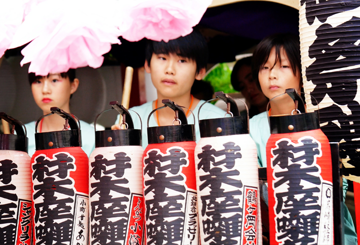 お渡りの上廻は、左回り(反時計回り)、下廻は、右回り(時計回り)で天王唄を謡いながら町内を渡御します。